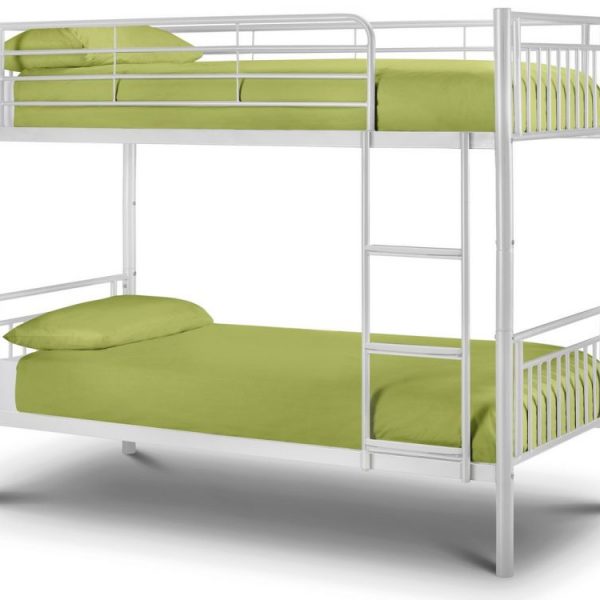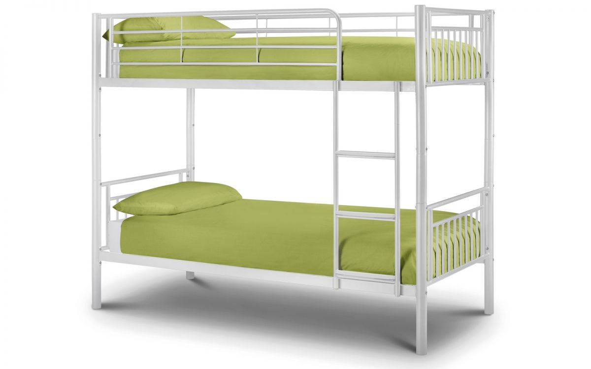 A sturdy metal bunk bed that can easily be split into 2 single beds in a durable High Gloss White Powder Coated Finish.