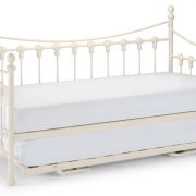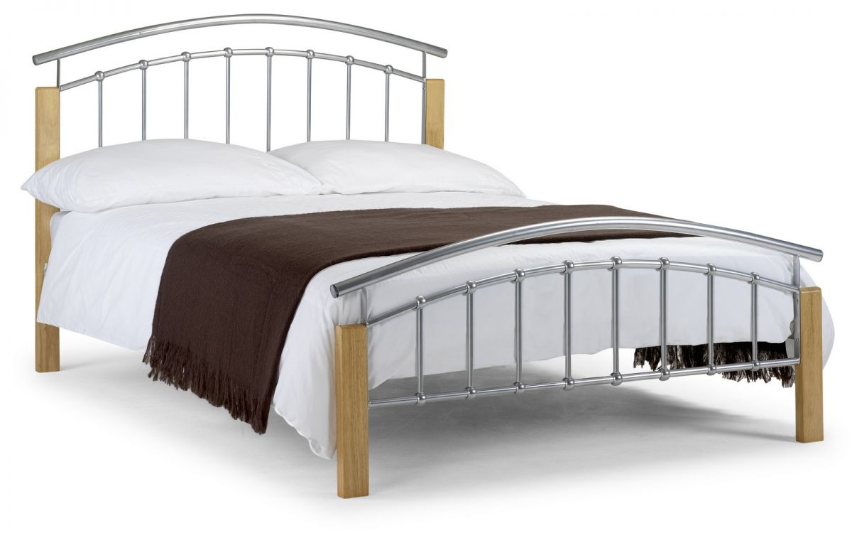 The Aztec bed has a sleek, contemporary design that modishly combines a bright aluminium frame with solid light oak coloured legs, while offering outstanding value for money. Its extremely sturdy construction ensures durability, while a sprung slatted base provides added comfort and a prolonged mattress life.