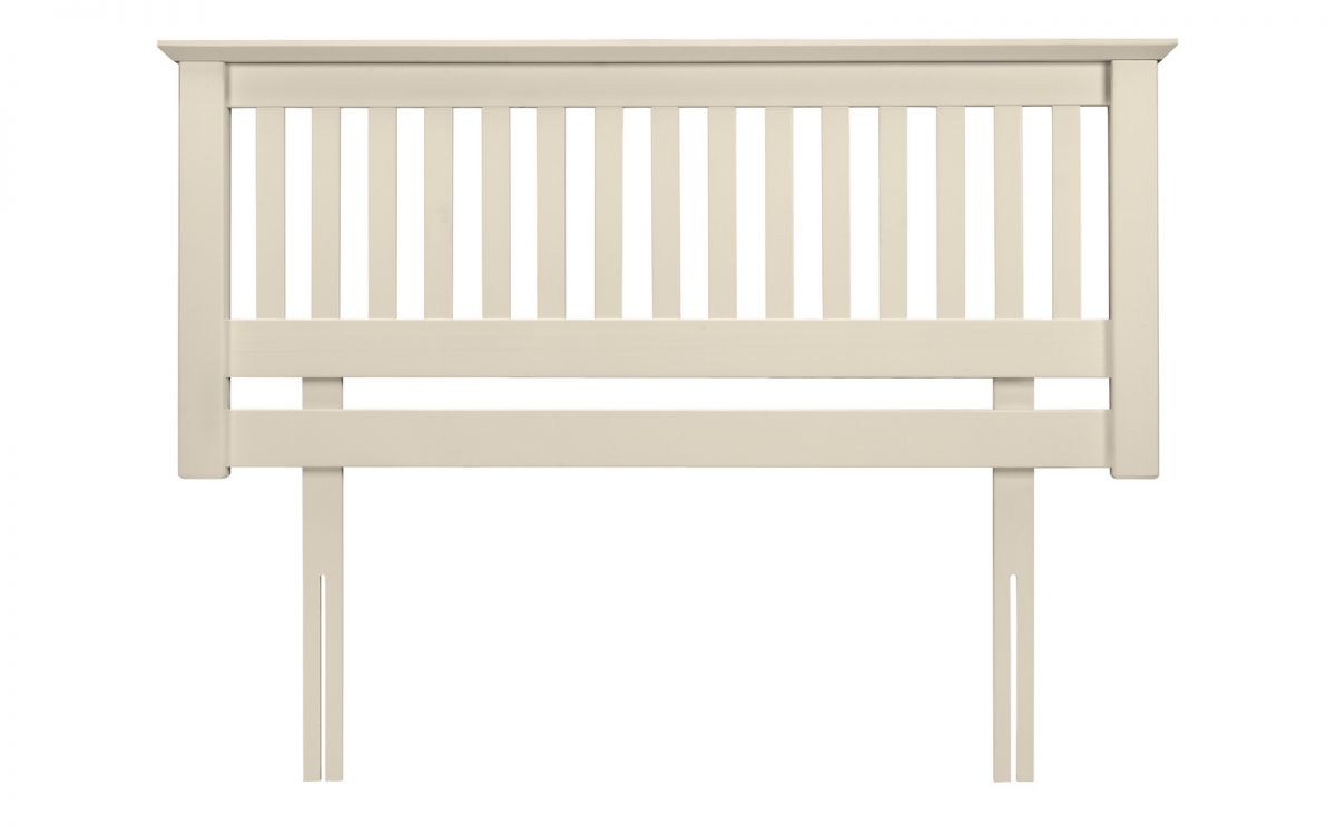 A contemporary shaker style headboard made from solid pine and MDF in a Stone White lacquered finish.