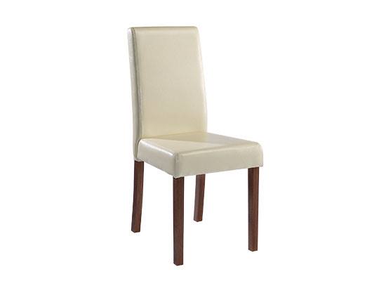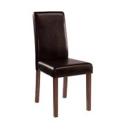 Sleek and simple faux leather chair with Walnut coloured legs that come ready to assemble in boxes of 2.