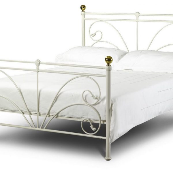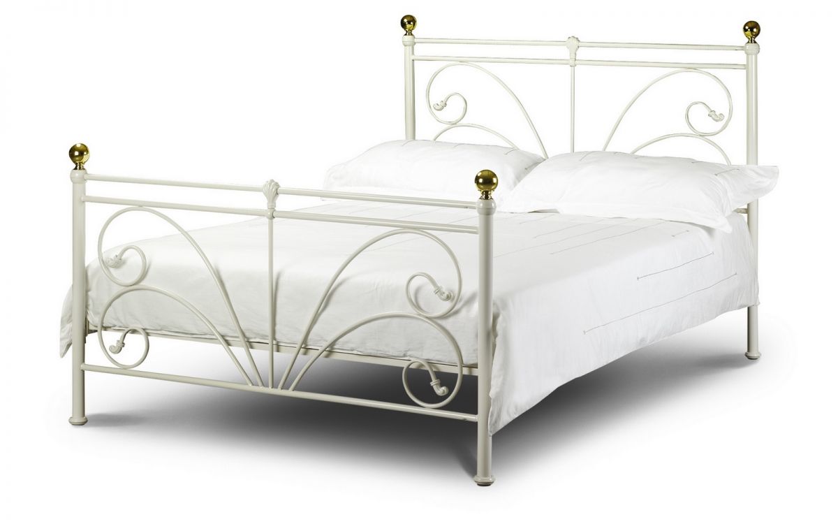 Elegant Ivory Metal Bed with Brass Effect Embellishments. Sprung Base for Extra Comfort and Mattress Life.