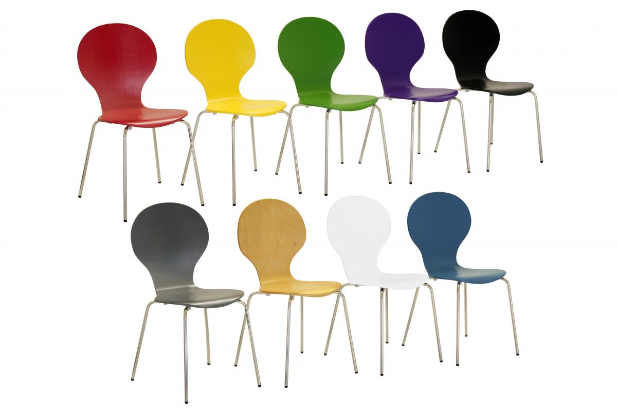 Fiji Round Chairs 430W x 395D x 880H . Beech, Black, Blue, Grey, Green, Purple, Red, Walnut, White, Yellow Packed in 4s