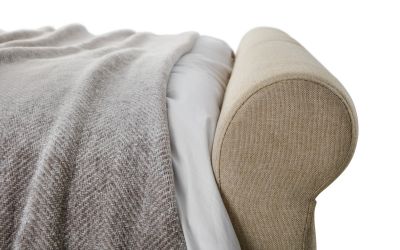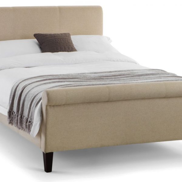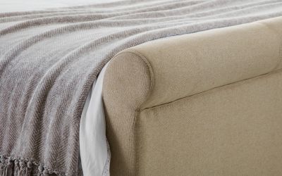 A sophisticated scroll design exquisitely upholstered in a subtle, sand coloured linen fabric to create a refined and highly versatile bed, equally at home alongside both contemporary and traditional bedroom decor. A sprung slatted base ensures supreme comfort and prolonged mattress life.