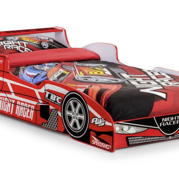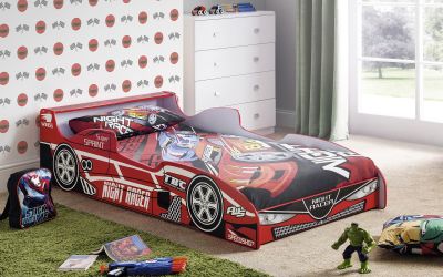 The Hornet Speeder is a durable and exciting bed finished in a stunning high gloss red lacquer. Its low profile and sleek styling combine to create an authentic racing car feel that kids will love at a price that offers phenomenal value for money. Its sturdy construction and eye-catching looks are accompanied by an exceptionally practical design, with a rear spoiler that can be used as a handy shelf, and a compact footprint that ensures it will fit well in the smallest bedroom. The Scorpion Bedding Set (sold separately) adds the perfect finishing touch. The bed is designed to take mattress size 90 x 190cm.