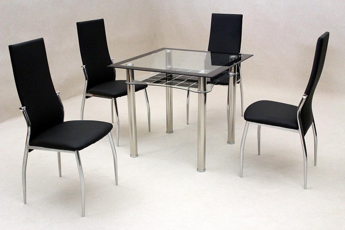 Jazo Black Dining Table Chrome 4 Lazio Chairs