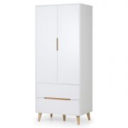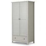 An elegant New England style wardrobe with two doors and one drawer. The combination of exquisite dove grey lacquered finish with characteristic side panelling and detailed chamfered cabinetry makes for a soothing and refined aesthetic with timeless appeal, while delicate pewter handles add the perfect finishing touch.