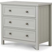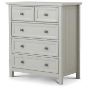 Maine is an elegant New England style range of bedroom furniture. The combination of exquisite dove grey lacquered finish with characteristic side panelling and detailed chamfered cabinetry makes for a soothing and refined aesthetic with timeless appeal, while delicate pewter handles add the perfect finishing touch. The Maine 3+2 drawer chest offers great storage with three large drawers topped with two smaller drawers.