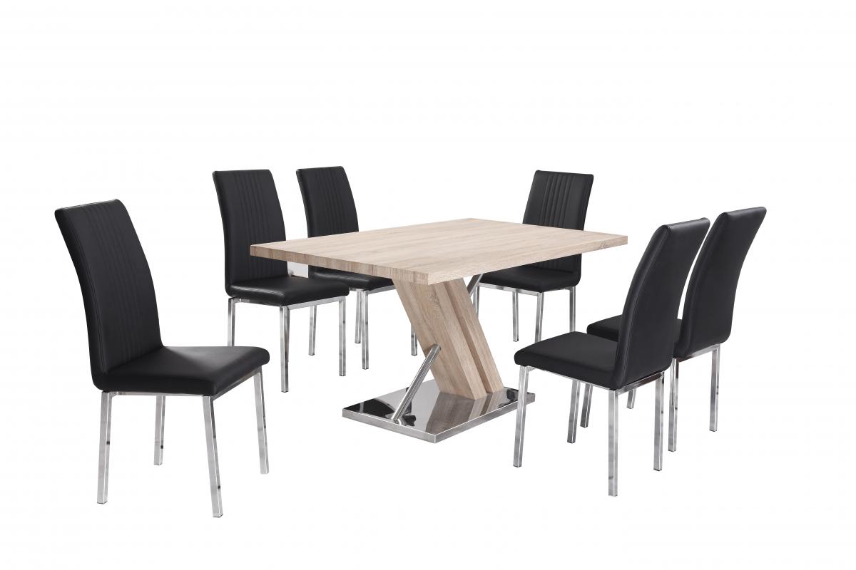 Montague Oak Effect Table Top with stainless steel base 1600W x 900D x 760H 6 PU Square tube White Chrome-plated Chairs Black, White