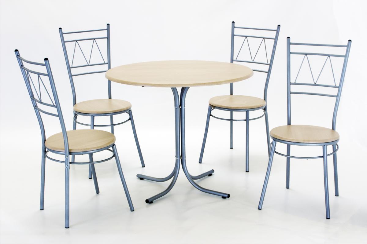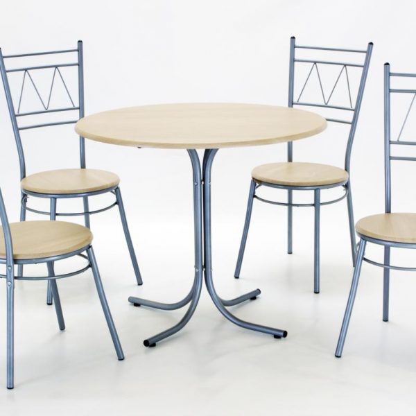 Oslo Round 900W Round . 4 Chairs . Silver with Beech Finish