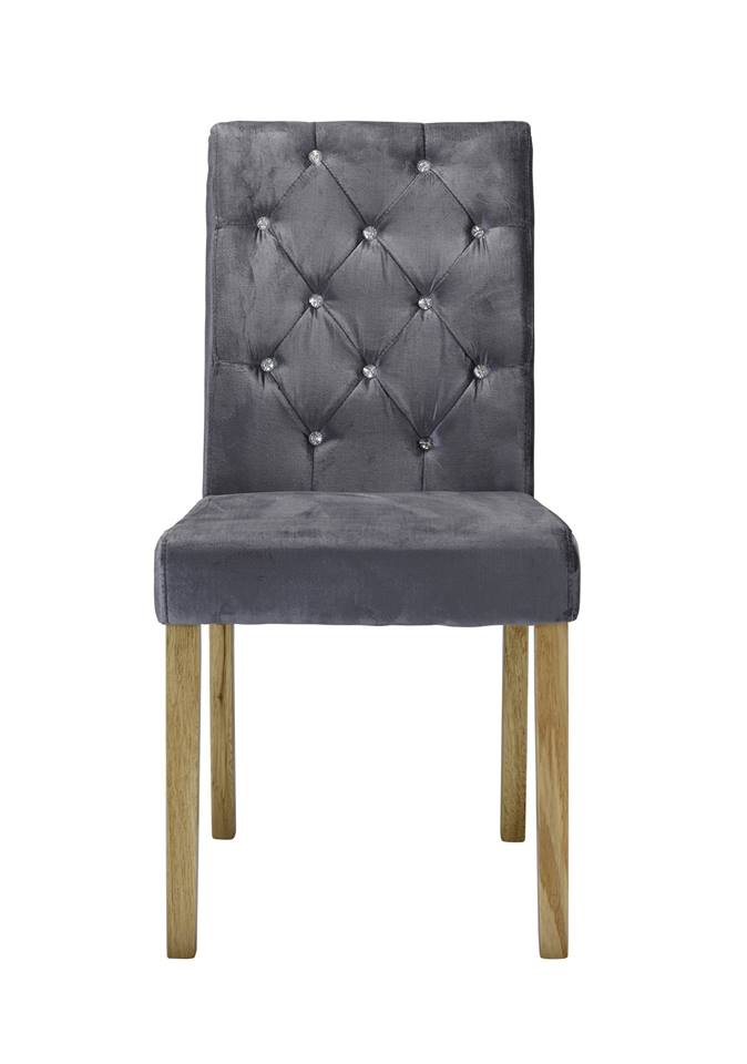Upholstered in a beautiful crushed velvet the Paris Chair has Diamante detail on the backrest making this chair a glamourous piece that will work well in either a dining room or as an occasional chair in the bedroom.