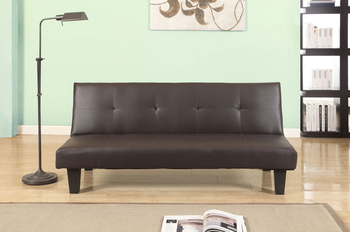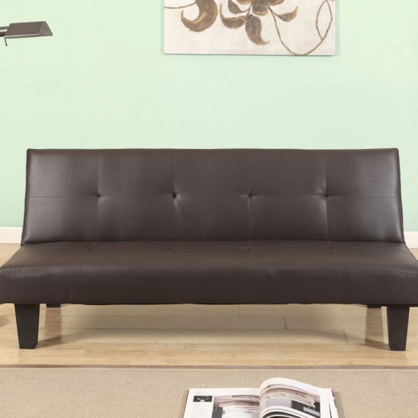 Constructed from high quality wood, the brown faux leather compliments any room throughout the home.