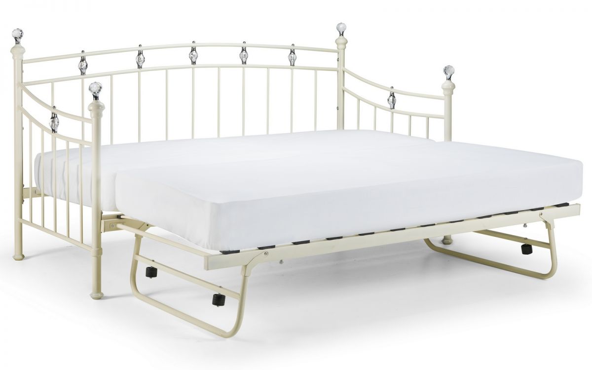 The Sophie Underbed Trundle fits neatly under the Sophie Crystal Daybed, slides out on wheels when required and raises up to make a super kingsize bed. A very versatile product that is both practical and elegant. Daybed Sold Separately.