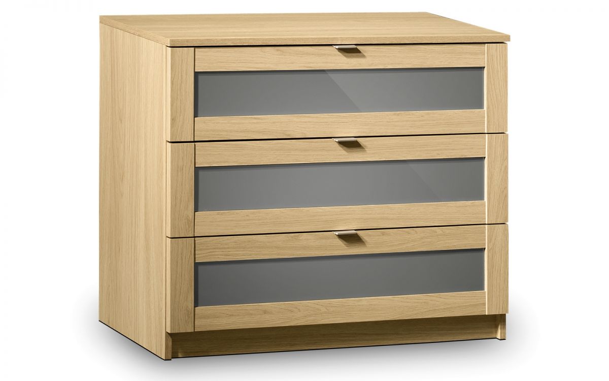 Strada is a chic, contemporary bedroom collection which combines a stylish light oak finish with attractive smoked high gloss inserts to stunning effect. Strada complements most bedframe styles from metal and wood to fabric for a softer look. Outstanding value for money.