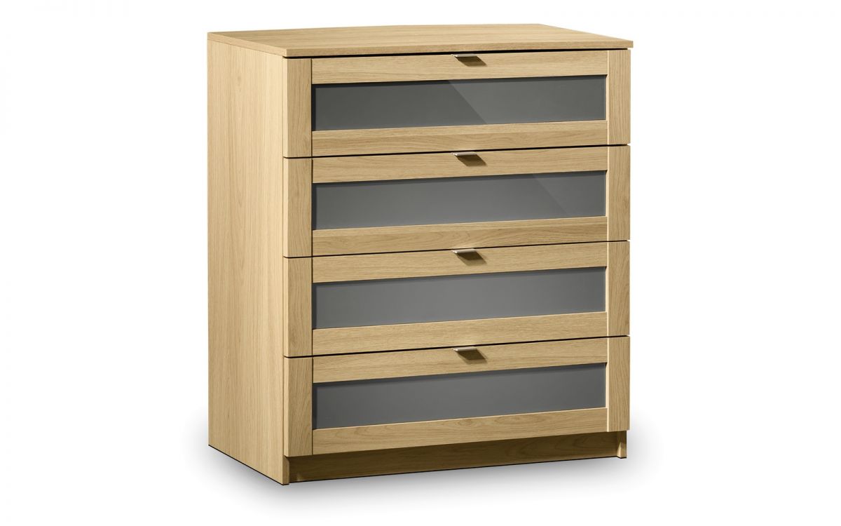 Strada is a chic, contemporary bedroom collection which combines a stylish light oak finish with attractive smoked high gloss inserts to stunning effect. Strada complements most bedframe styles from metal and wood to fabric for a softer look. Outstanding value for money.