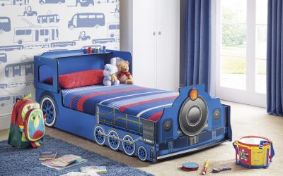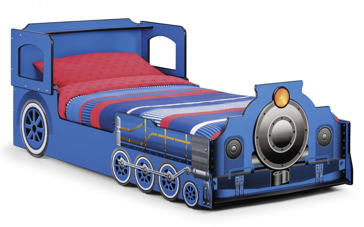 The Tommy Train Bed will be loved by children of all ages. Presented in a matt blue lacquered finish, with beautiful graphic detailing to give a realistic steam train effect. The design is both robust and practical, incorporating a handy rear shelf to store favourite toys and fun cut-out windows completing the picture. The Tommy Train Bed will ensure that bedtime becomes the highlight of the day. The bed is designed to take mattress size 90 x 190cm.