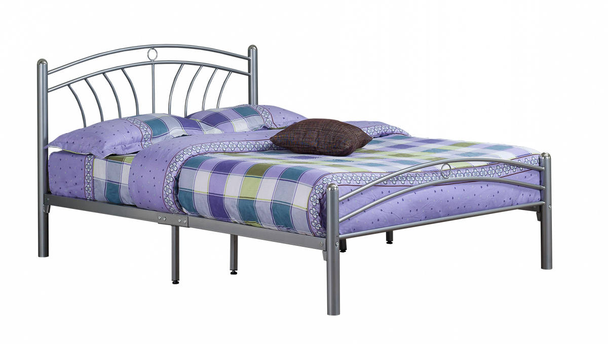 This versatile silver bed is a best seller and is very practical. The chrome caps round off the headboard and footboard very nicely and the bed has a strong mesh base. It is very easy to assemble. (Available in 3’ Single, 4’ Small Double and 4’6’’ Double)