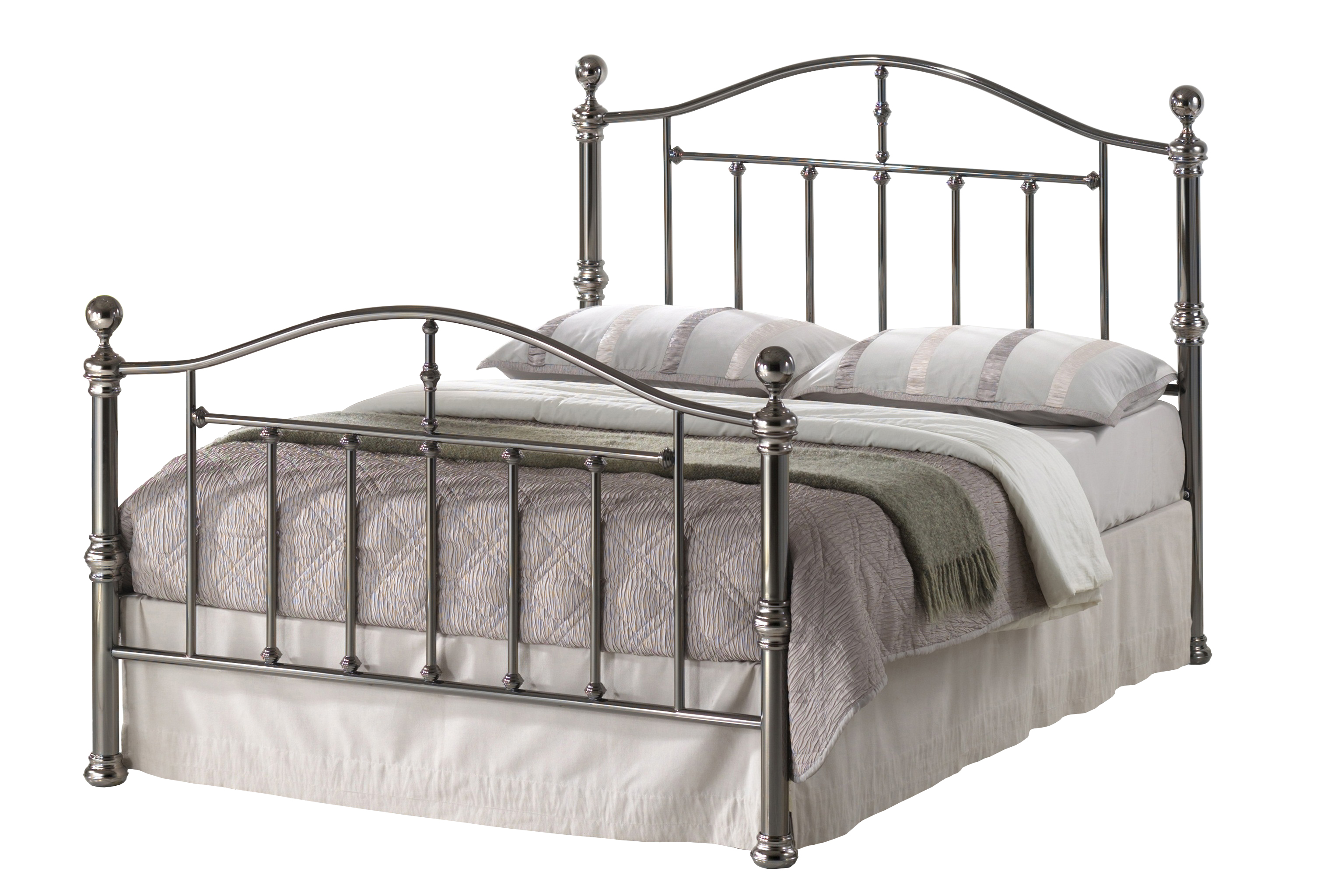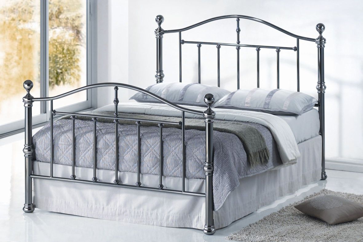 Gunmetal nickel plated, this is a top quality bed frame with a very strong base.
